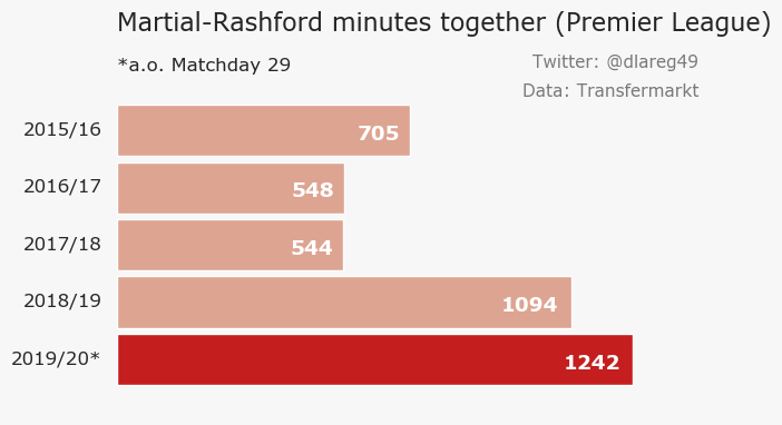 While the two shared 705 minutes from just February onward in 2015/16, this number dropped to the 500s under Jose, who also started viewing the 2 as competitors for the LW spot in 2017/18 (until you know who arrived in January). Thankfully for me, things have been on the up for these two since Solskjaer arrived who has fully put his trust in them to lead the line. With 35 goals between them already this season, Solskjaer’s faith appears to be paying off and hopefully, this is merely the first sign of greater things to come.